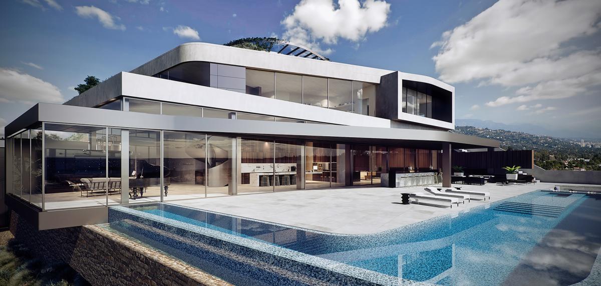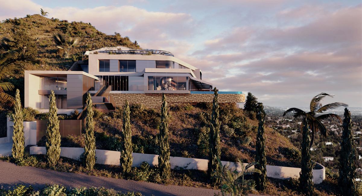 We made these renderings so the 12,500 square feet estate can be sold easier. It is a real advantage to saw to potential clients how they can utilize the land they want to buy.